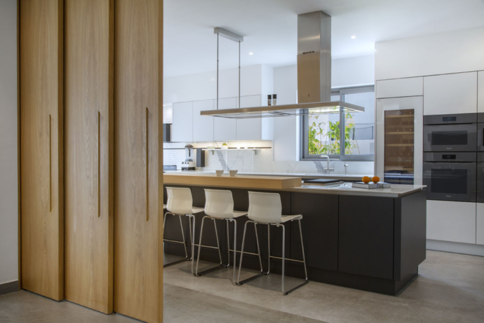 وبالنسبة للأجهزة المضمنة في المطبخ فهي من الدرجة الأولى وتمنحه خصائص وظيفية وعملية عالية الكفاءة، فكان مبرد النبيذ والثلاجة ومجمد الثلاجة من Liebherr، وموقد الحث والشواية وماكينة القهوة والأفران والميكروويف من Miele، بينما اختيرت غسالة الأطباق المدمجة بالكامل من Siemens، وشفاط Moon Island الرائع بقياس 180 سم من Elica.