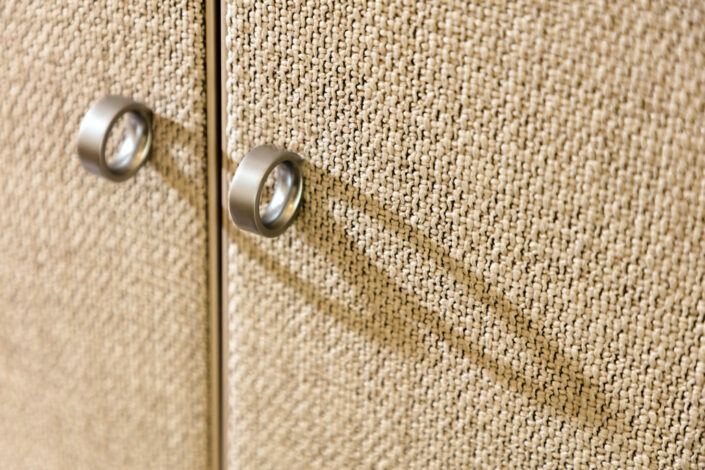 بالوصول إلى خزانات الملابس للطابق العلوي من فيلا بيانكا، فقد تم الاستفادة من حلول التخزين التي توفرها خزانات Interluebke، وتحديداً مجموعات Base and Collect لتصميم 5 خزانات متناسقة.
